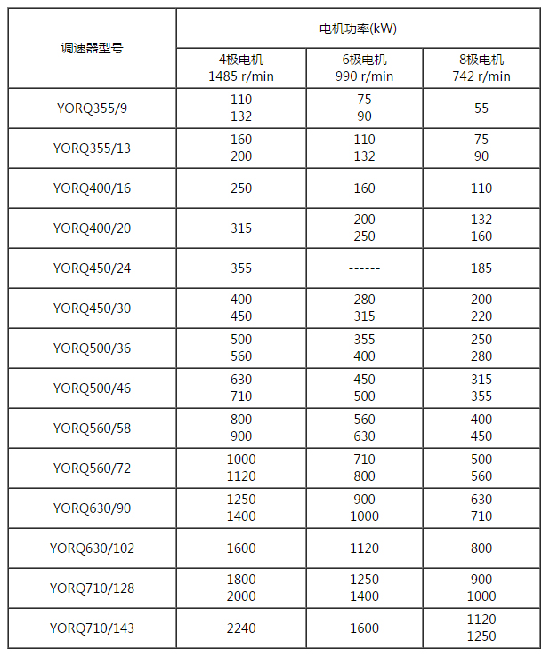 表2 YORQ短系列永磁耦合調(diào)速器與匹配電動(dòng)機(jī)功率對(duì)照表